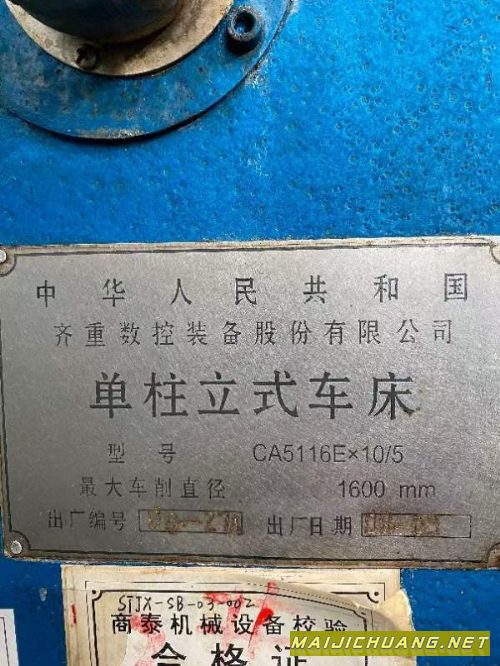 洛阳仓库新春大酬宾正宗齐齐哈尔CA5116Ex10/5动梁数控立车,切削直径1600mm,工作台直径1400mm,主轴功率30KW,西门子系统。 信息编号:S537707 |