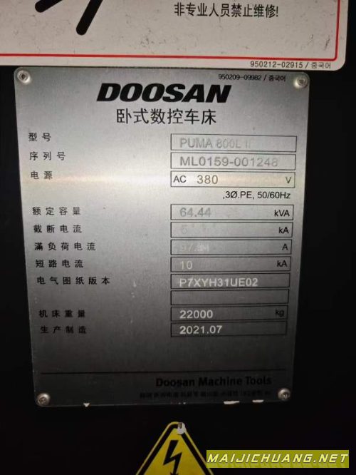 韩国原装斗山PUMA800L数控车床,主轴通孔320配32寸卡盘,12工位超大刀塔,回转直径1140,车削直径900,有效加工长度3200,2021年机器,发那科32i系统。 信息编号:S552278 |